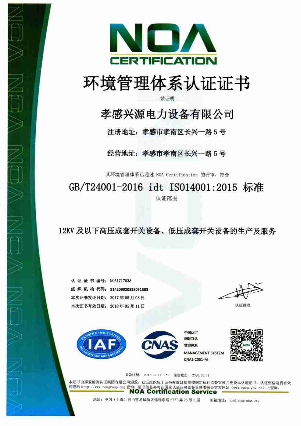 環境管理體系證書