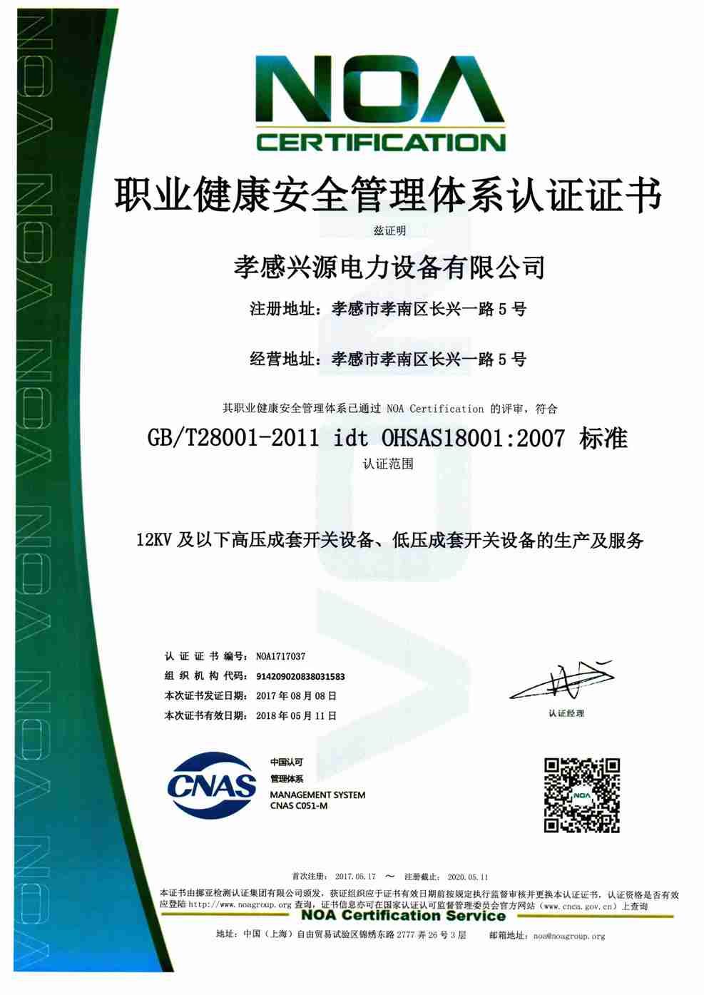 職業健康管理體系證書